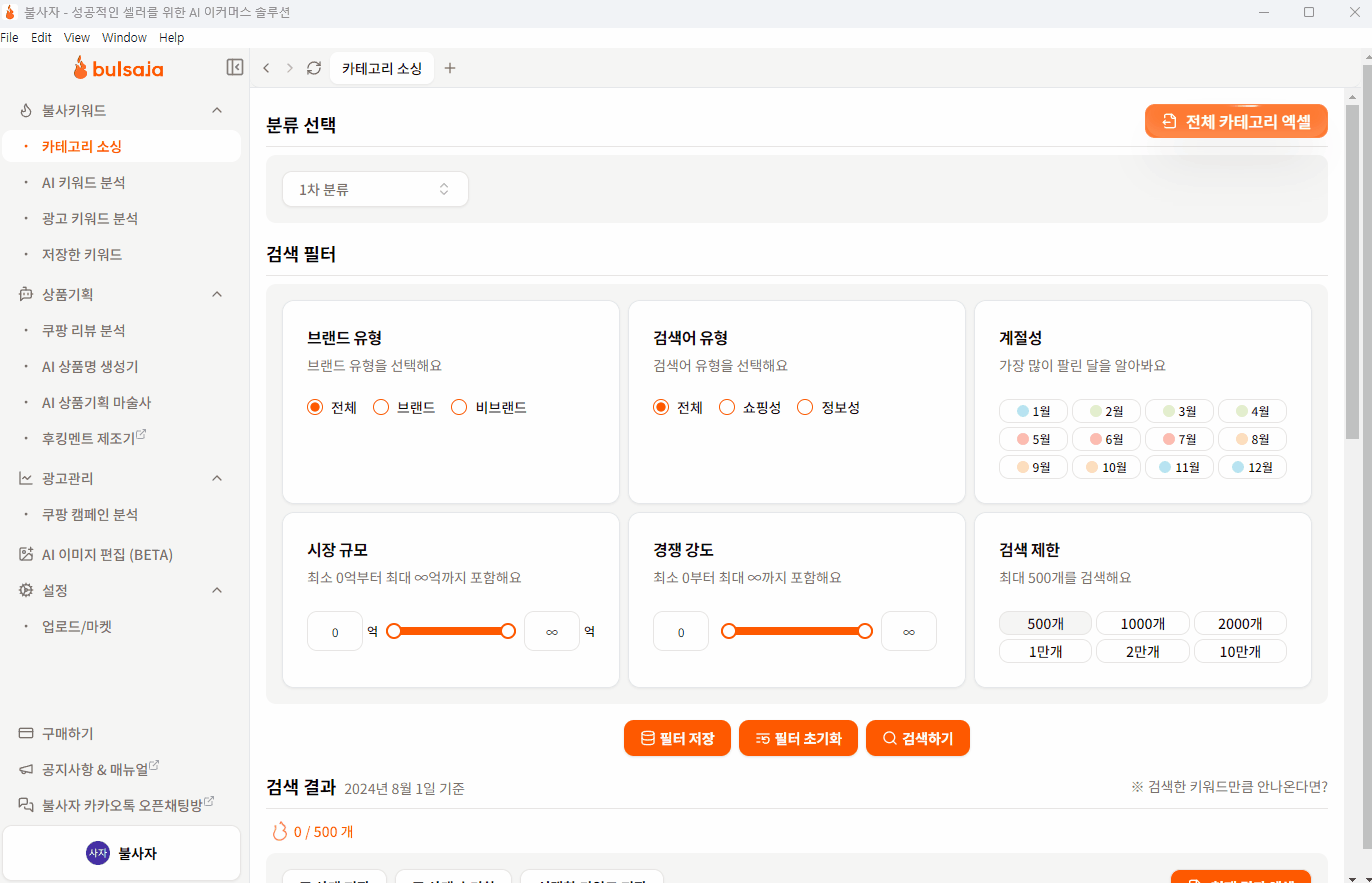 이를 통해 효과적인 마케팅 전략을 수립할 수 있습니다. 불사자 카테고리 소싱의 검색 필터를 통해 여러분의 조건에 꼭 맞는 키워드를 발굴해보세요!
