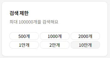 방대한 키워드 중 원하는 수의 키워드만 볼 수 있도록 제한할 수 있습니다.
