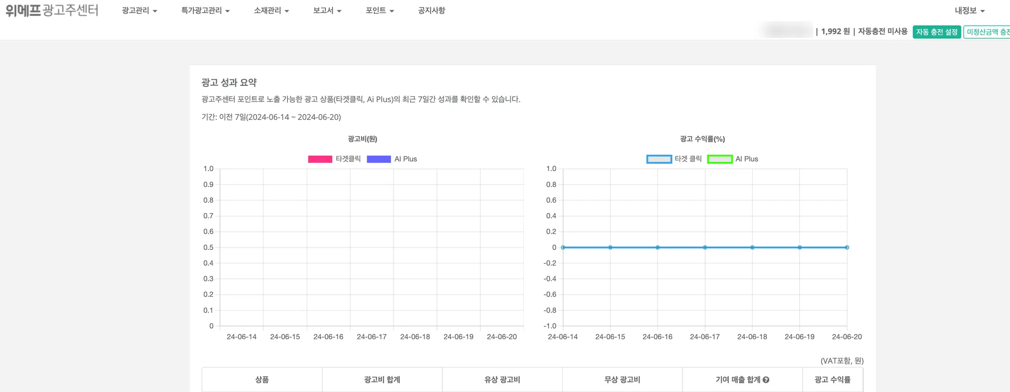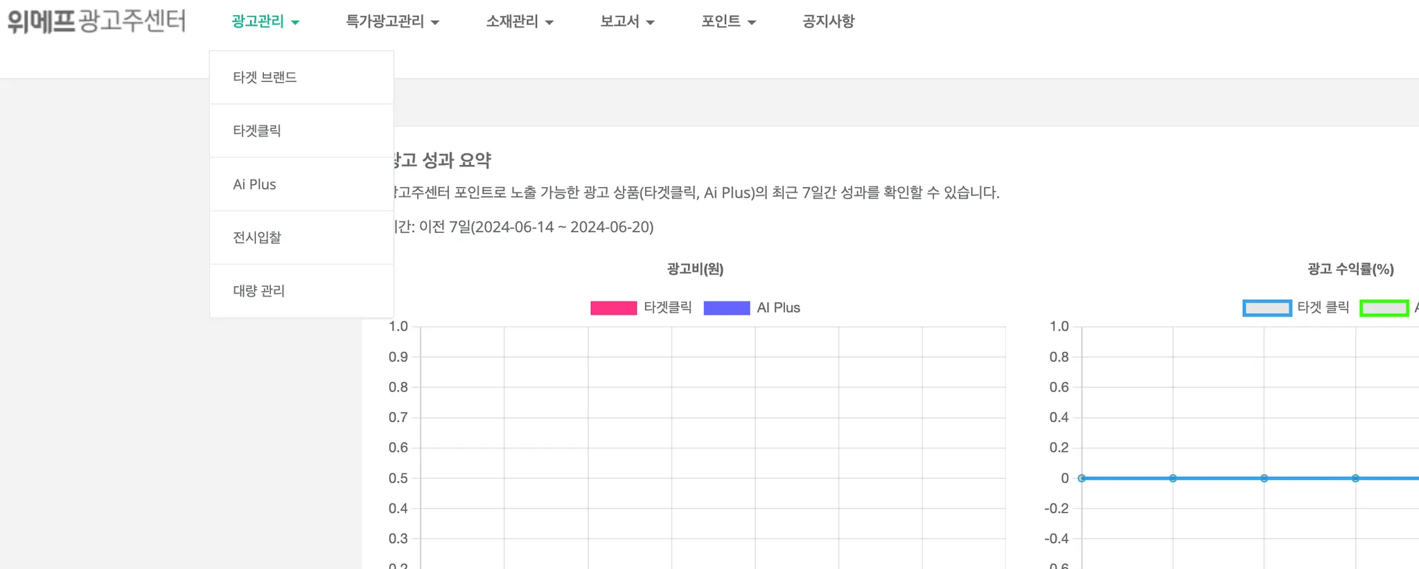 2. 광고관리> 타겟클릭 탭에 들어갑니다.