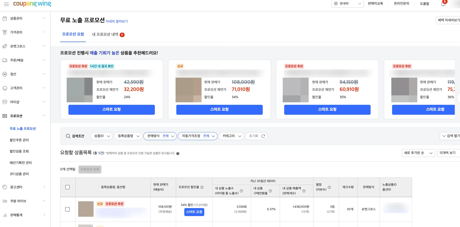 가구매가 끝나면, 로켓그로스 상품으로 무료노출 프로모션을 진행하게 됩니다. (판매자배송x)