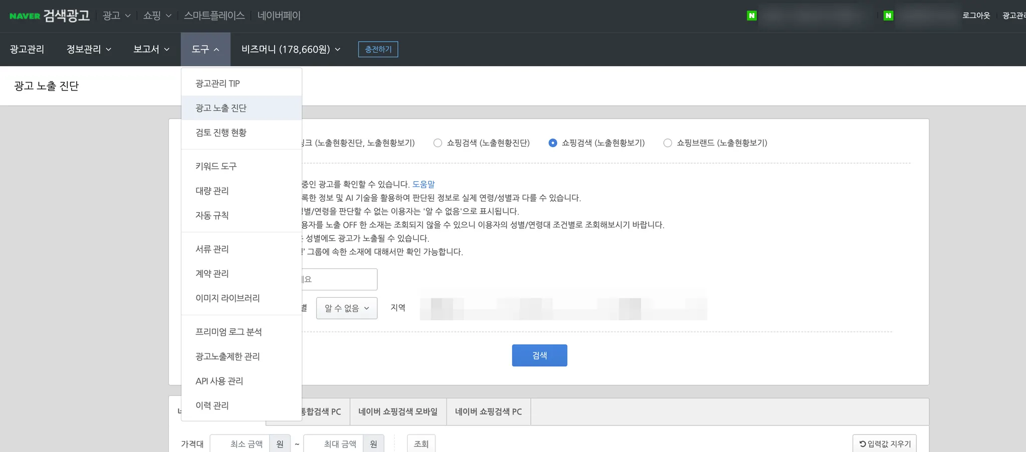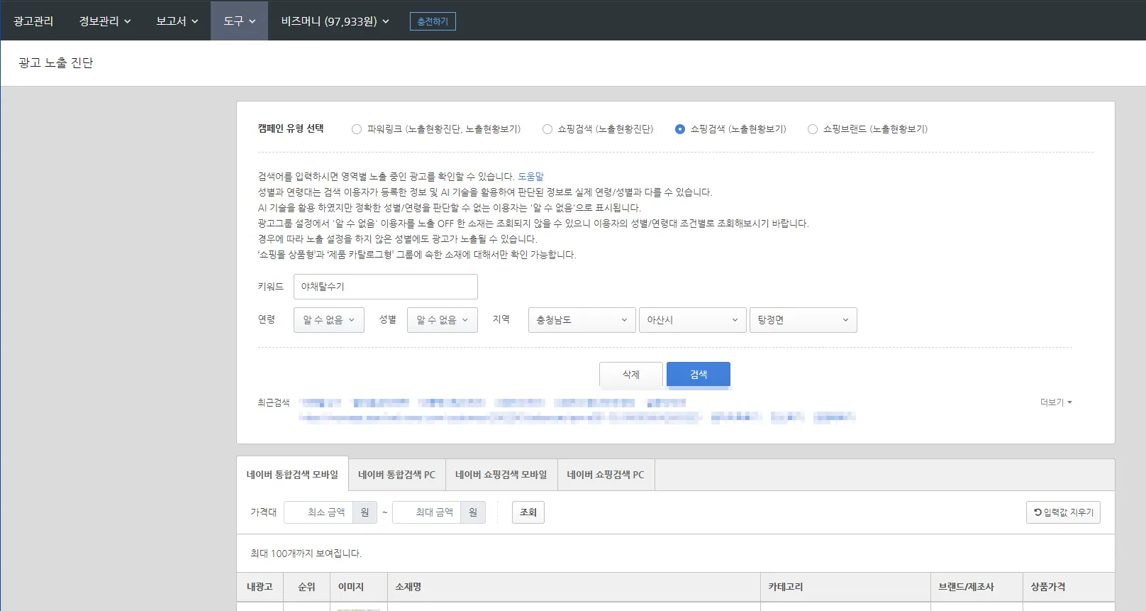 3. 약 2~3일 뒤 광고 노출이 원하는 대로 되고 있는지 확인하기 위해서 노출진단을 합니다.