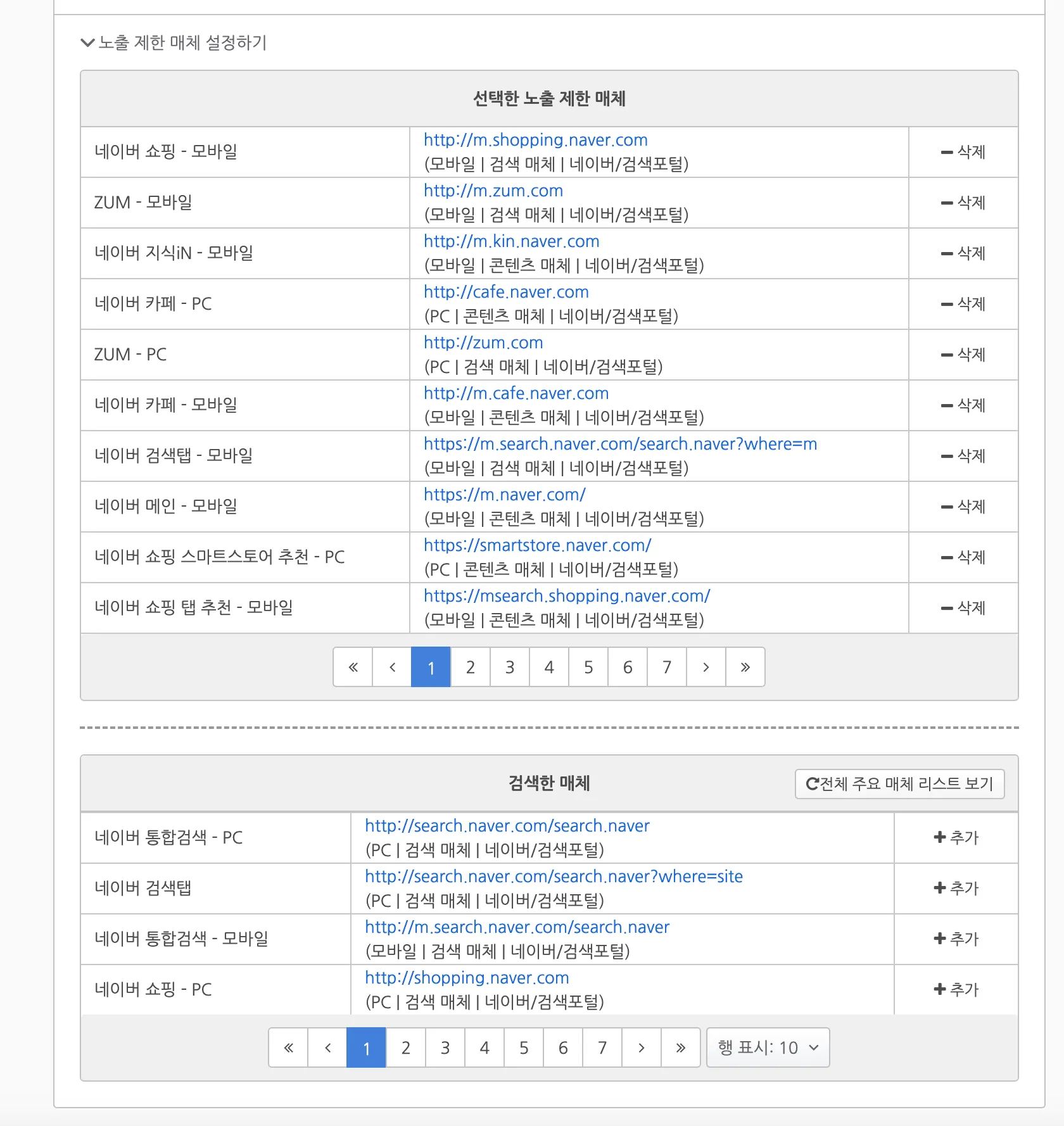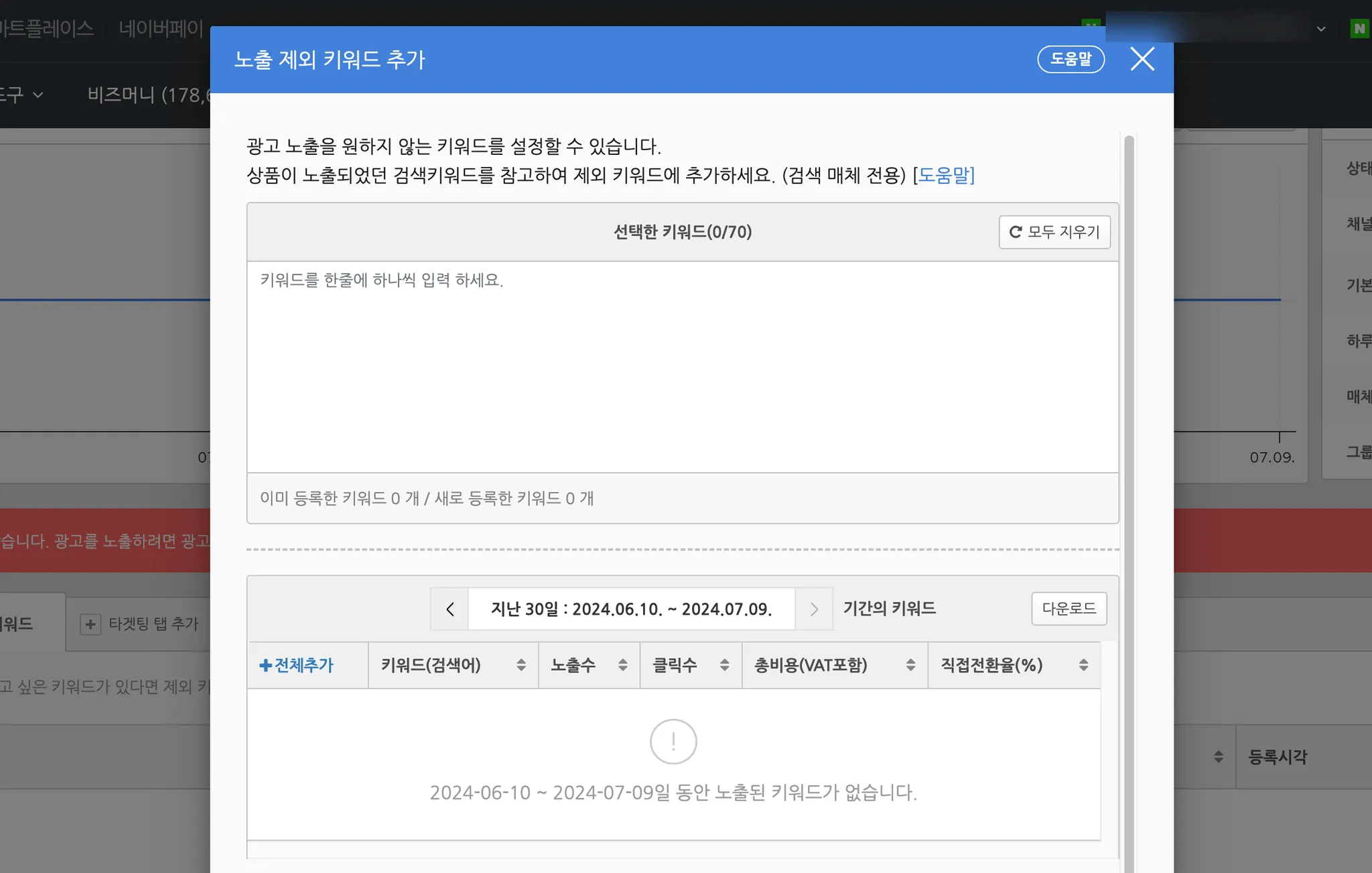 제외키워드 탭으로 들어가 제외 키워드 추가를 클릭합니다.