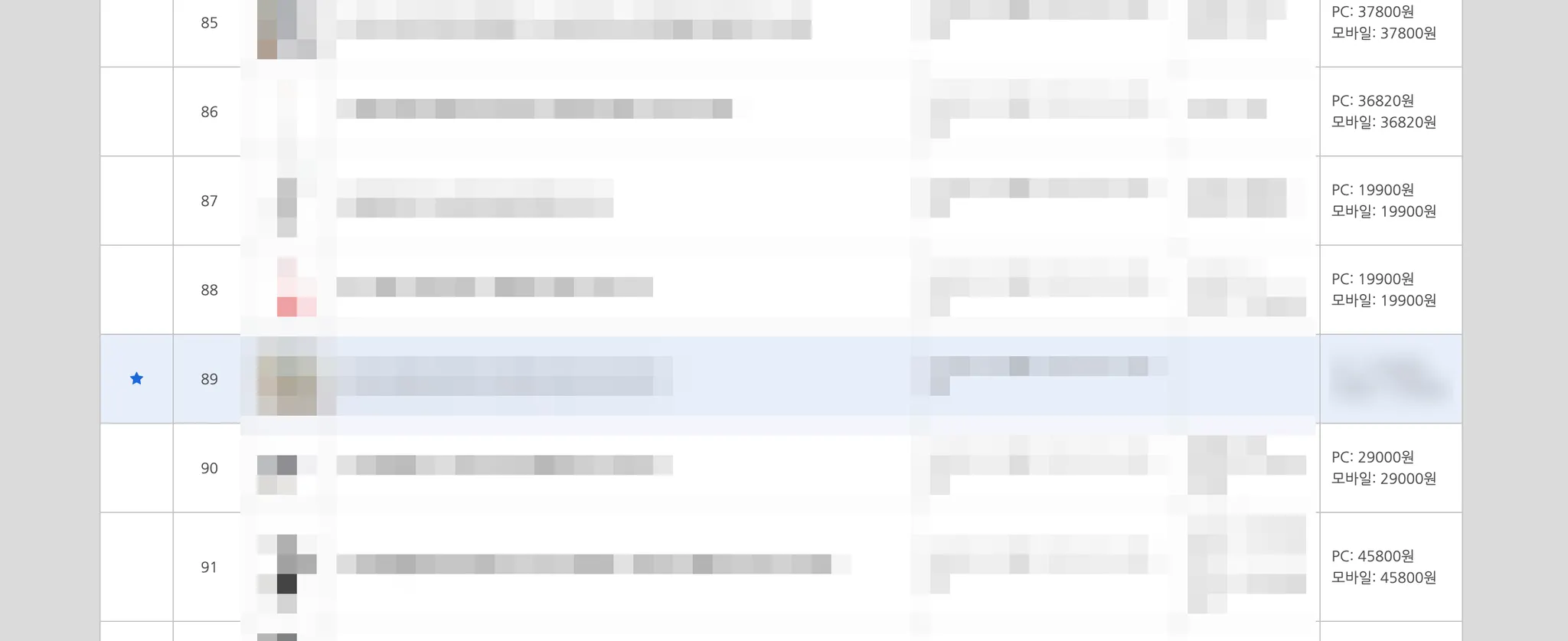 다른 예시로, ‘음식물처리기’를 클릭했을 시, 89등에 노출이 되고 있습니다.
