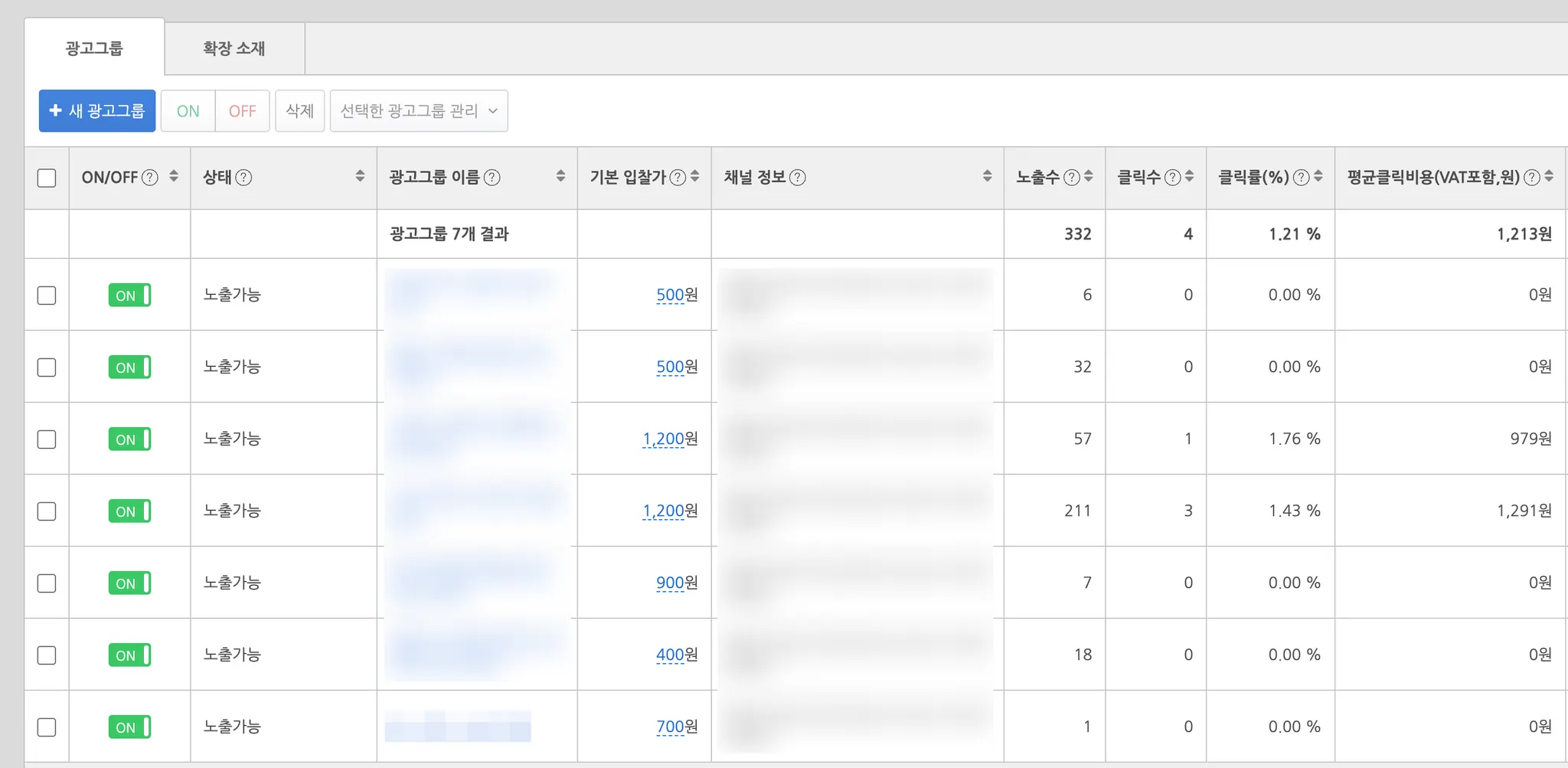 3. [+새 광고그룹]을 클리하여 새 광고그룹 관리를 설정합니다.
