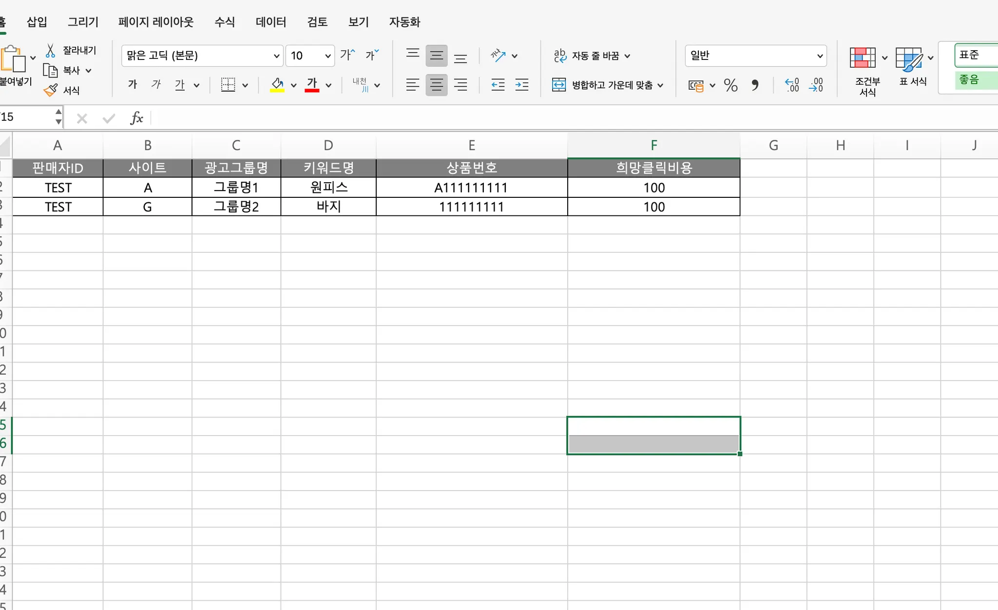 키워드명: 광고그룹에 우리가 등록하고자 하는 키워드