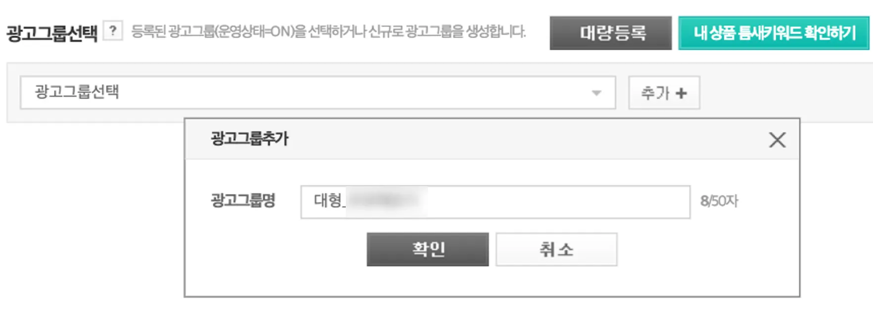 5. 광고그룹명을 작성한 후 확인을 클릭합니다.