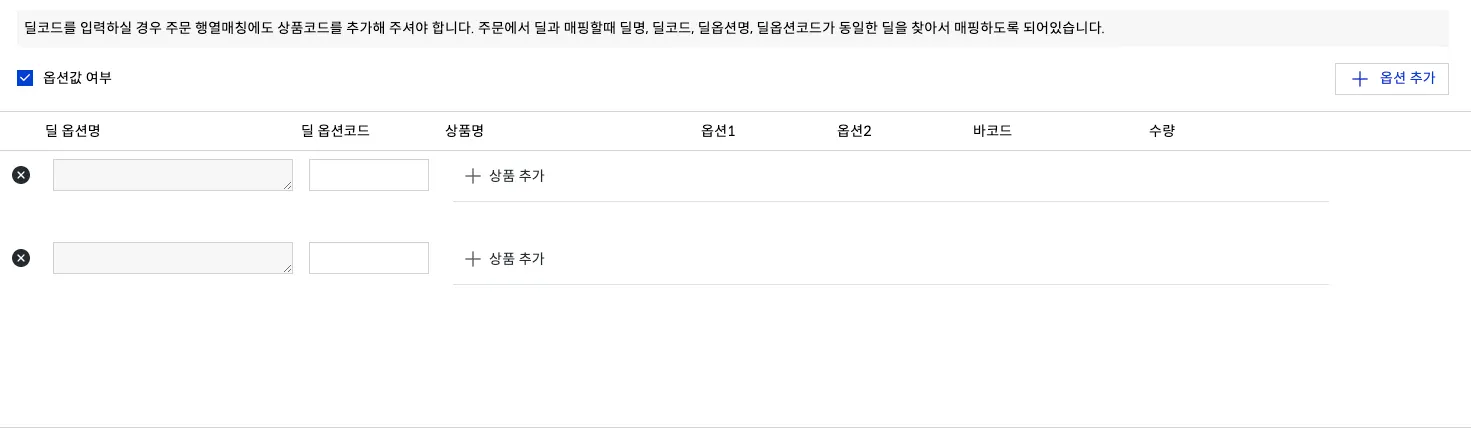 딜 옵션코드를 관리코드와 동일하게 설정하기