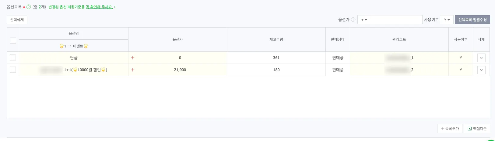 스마트스토어 옵션 상품이라면 체크